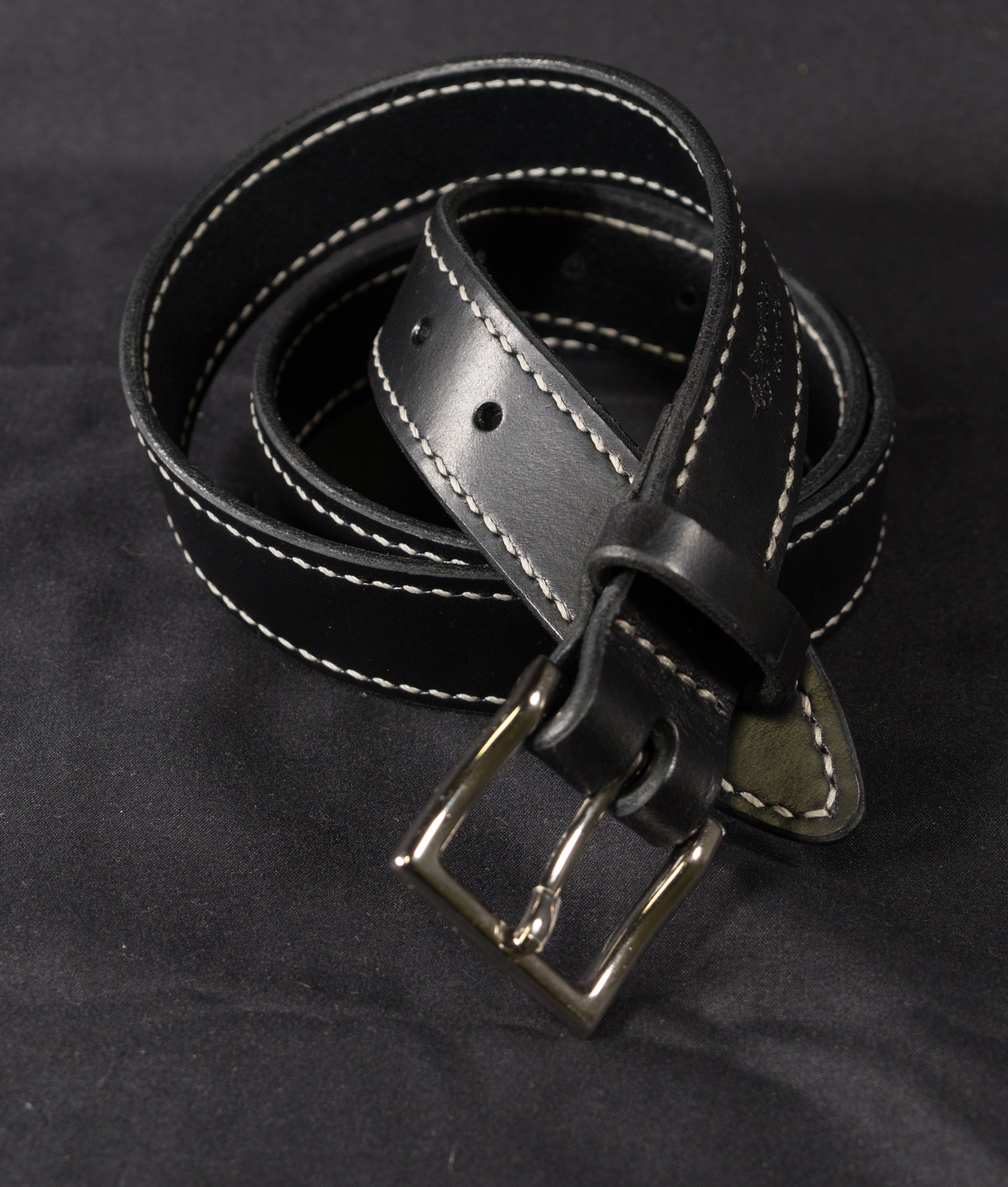 Hand made belts in three styles with many buckle options. Ranging from a riveted everyday belt to a completely hand-stitched formal dress belt.