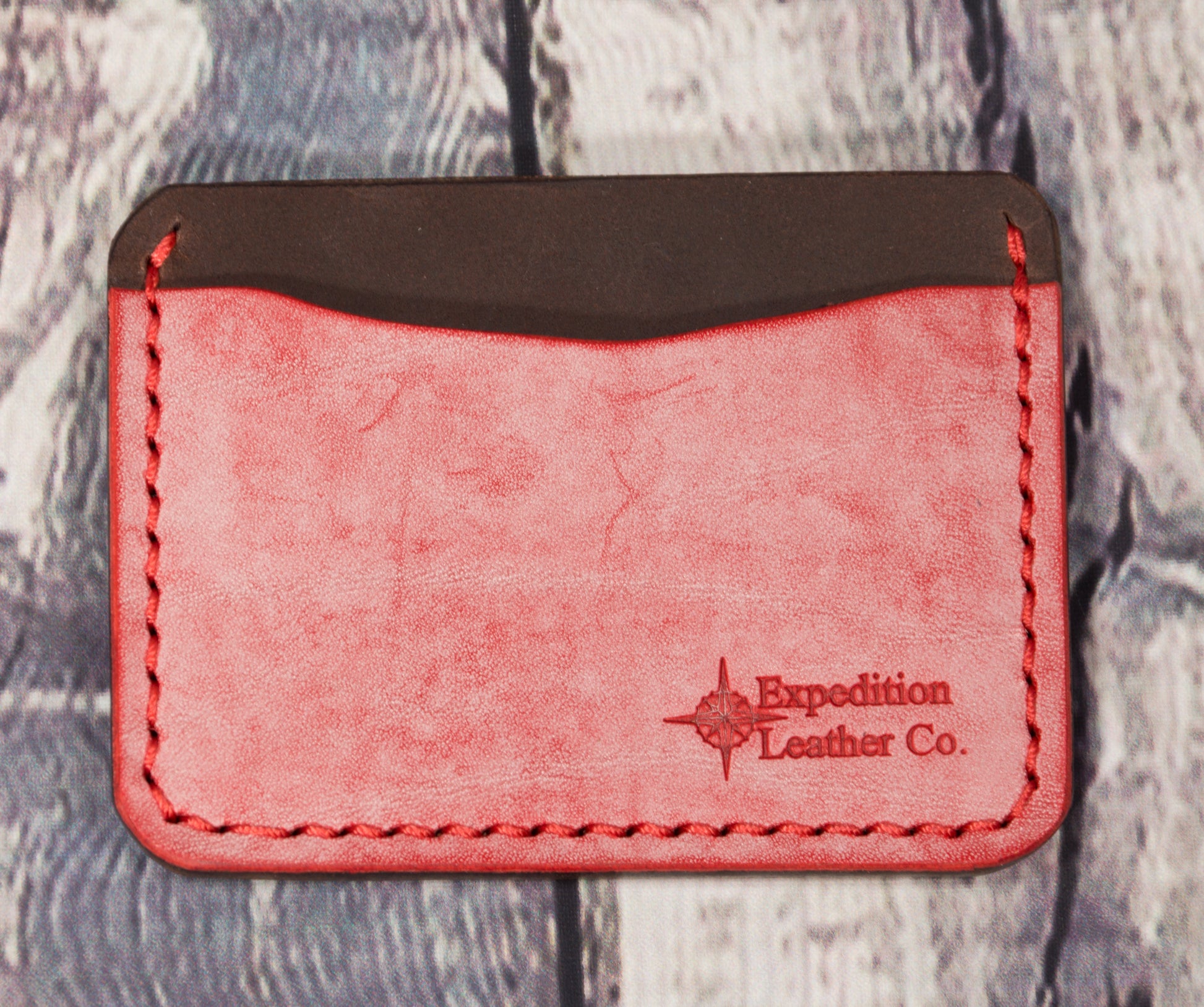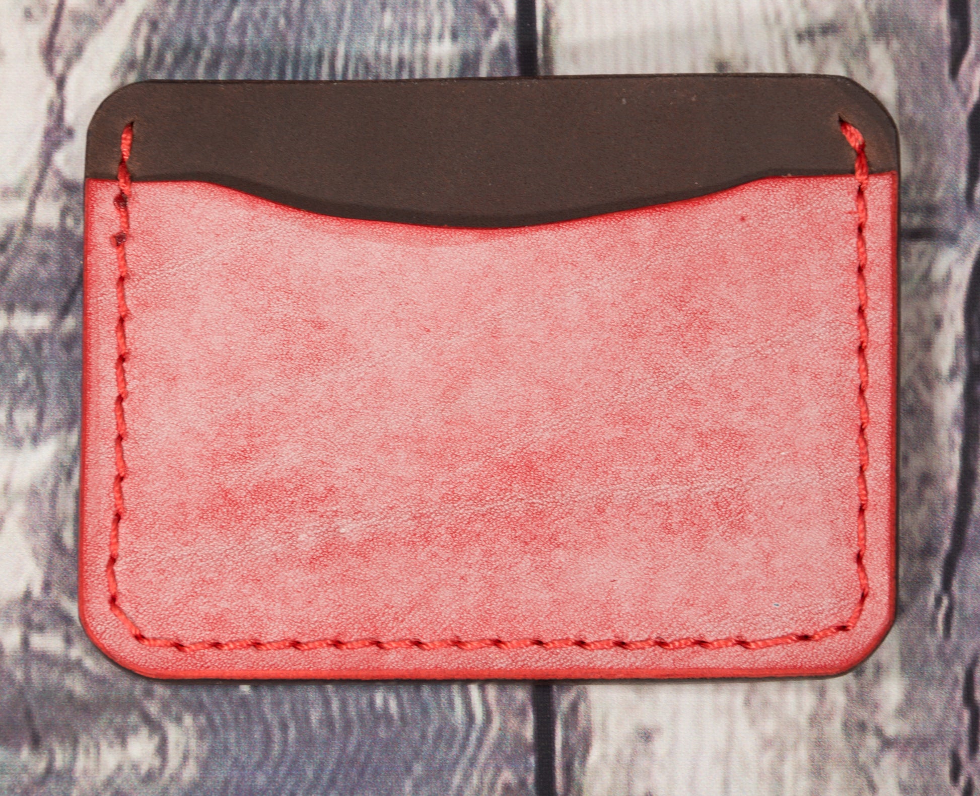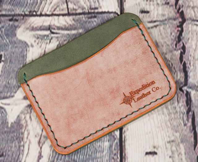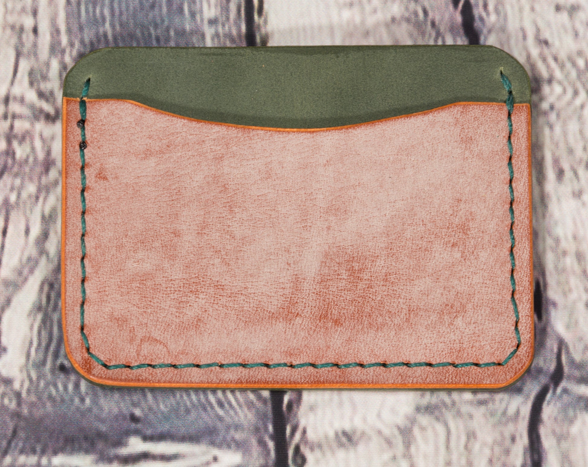 The Pass is a cardholder style wallet that will carry two cards in each pocket and two in the centre while it is new. Once broken in it will carry more with ease. These are made with Ghost leather pockets.